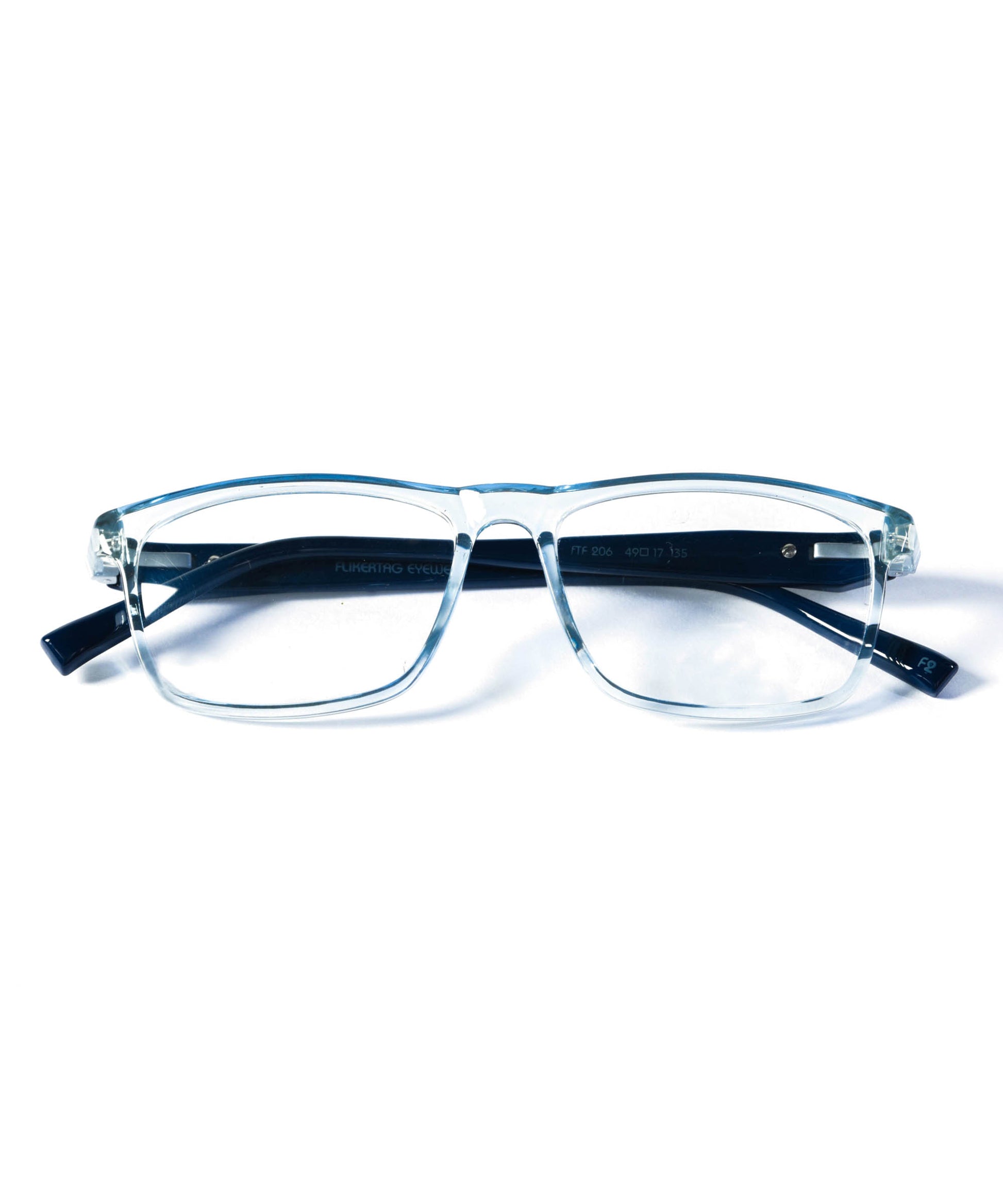 Flikertag Eye Glasses Frame For Men & Women [FTF206 F2 Rectangle Shine Water Blue Frame, 50mm]