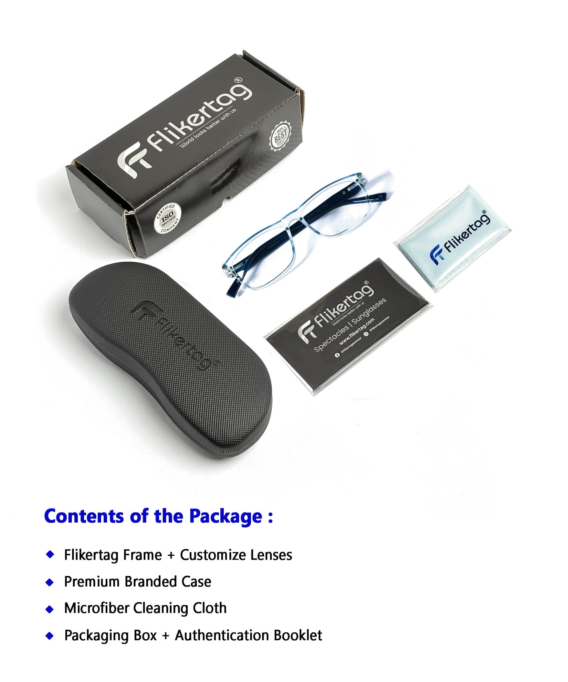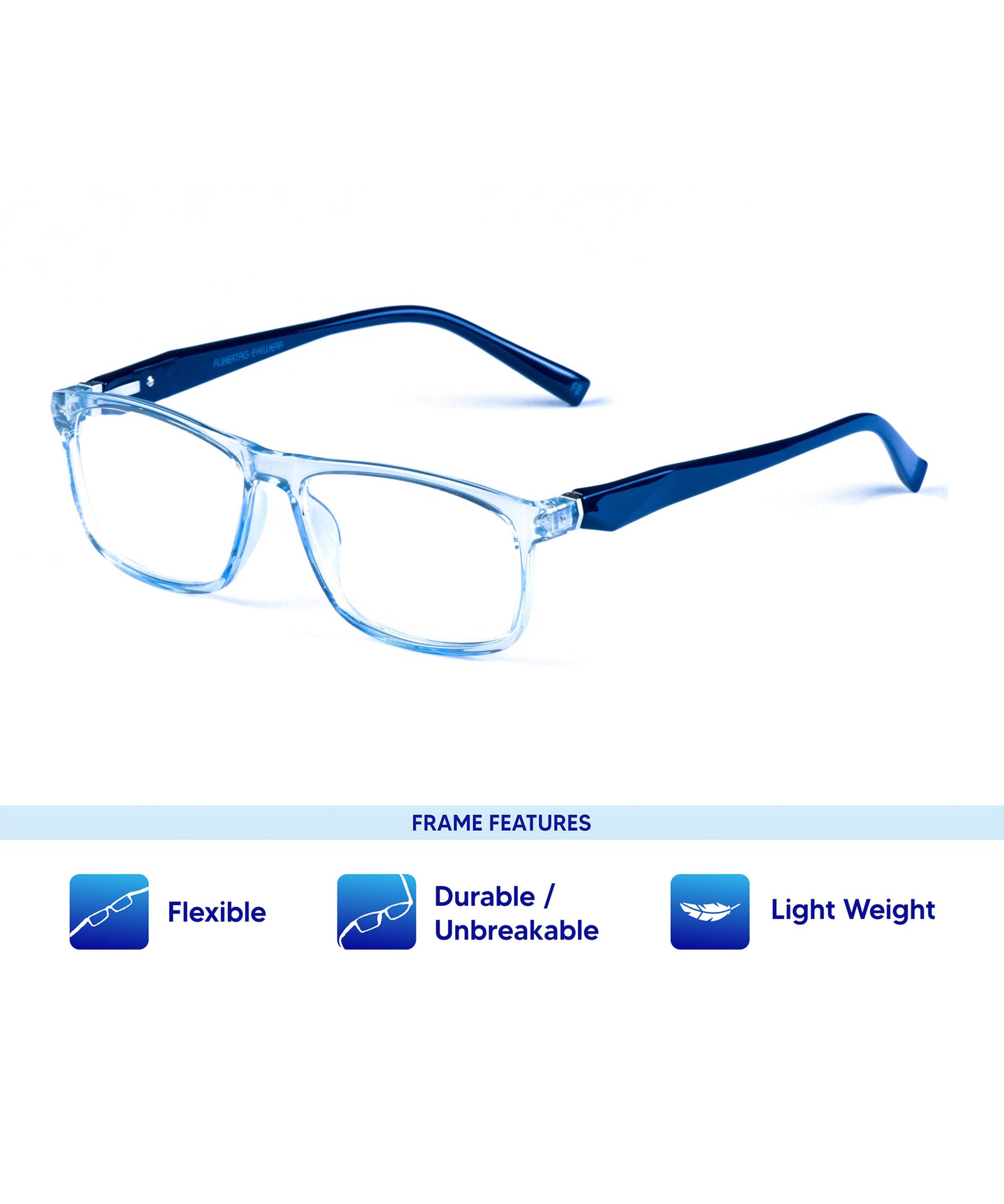 • Flikertag spectacles are crafted with high precision. Our expert designers have worked hard to design spectacle frames which look classy and a refreshing experience to the user as well. Also we use the best quality materials and techniques to manufacture spectacle frames. All the parts that go into manufacturing are inspected strictly for better durability.