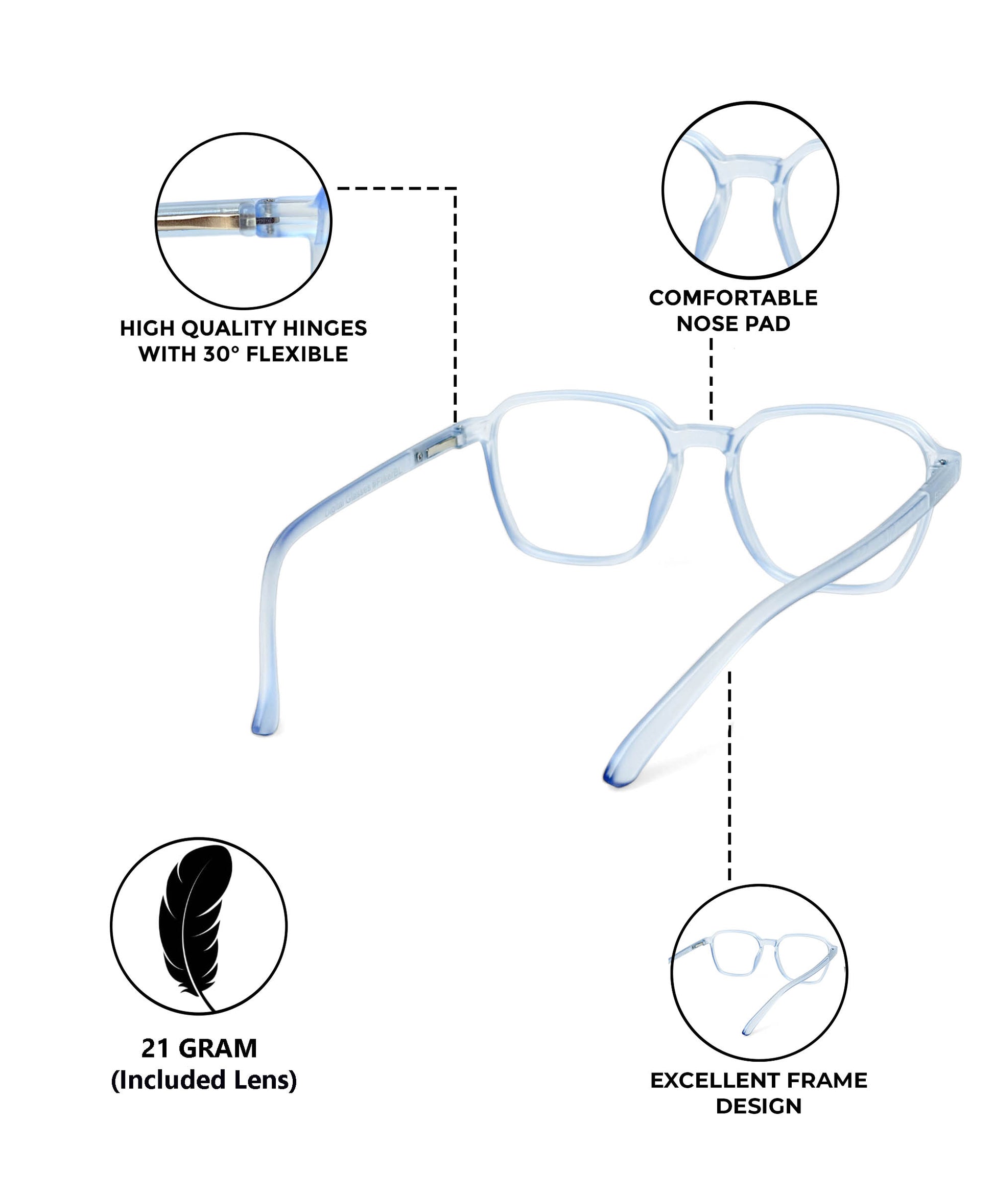 Flikertag Eye Glasses Frame For Men & Women [FTF223 F2 Square Water Blue Frame, 52mm]