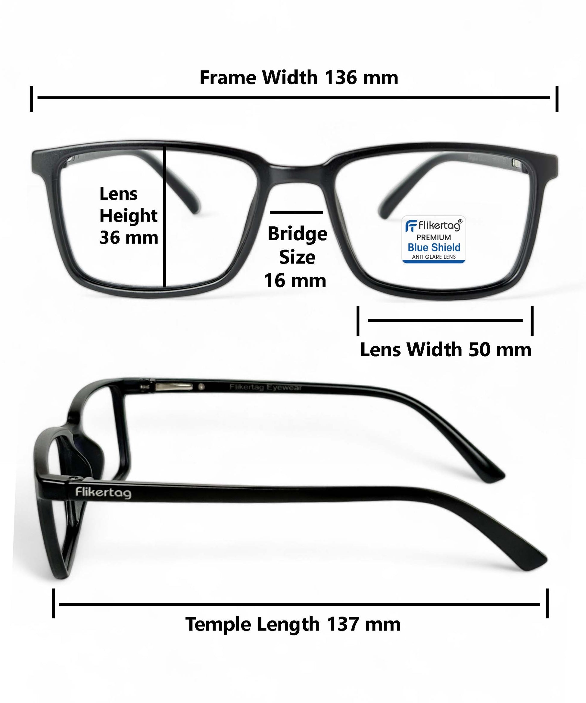 Blue Cut Computer Glasses for Eye Protection | Zero Power Blue Light Filter Glasses With UV Protection for Boys & Girls [FTF213 F1 Rectangular Shine Black Frame, 49mm]